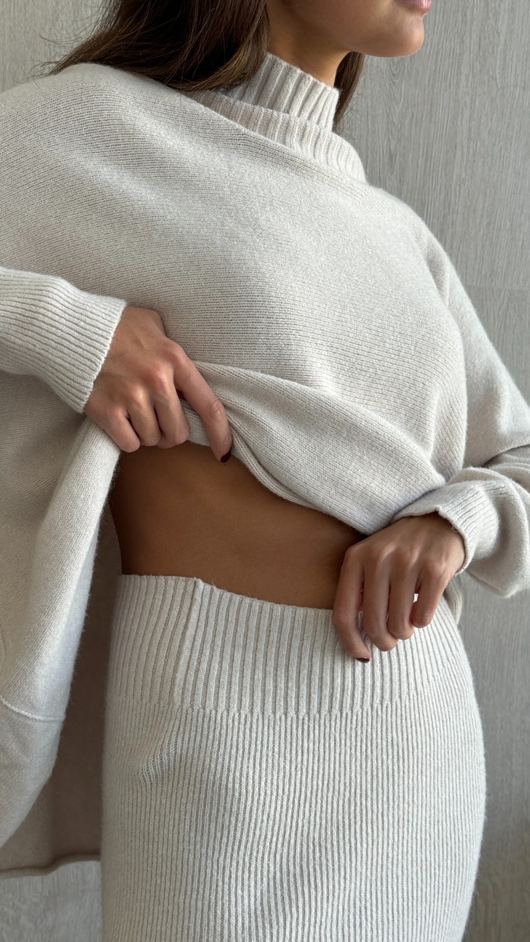 Stretch ribbed Viscose Knit midi skirt with amazing comfort and softness. Easy to team with your favourite flats or boots. Endless versatility and looks perfect with matching Alma Sweater