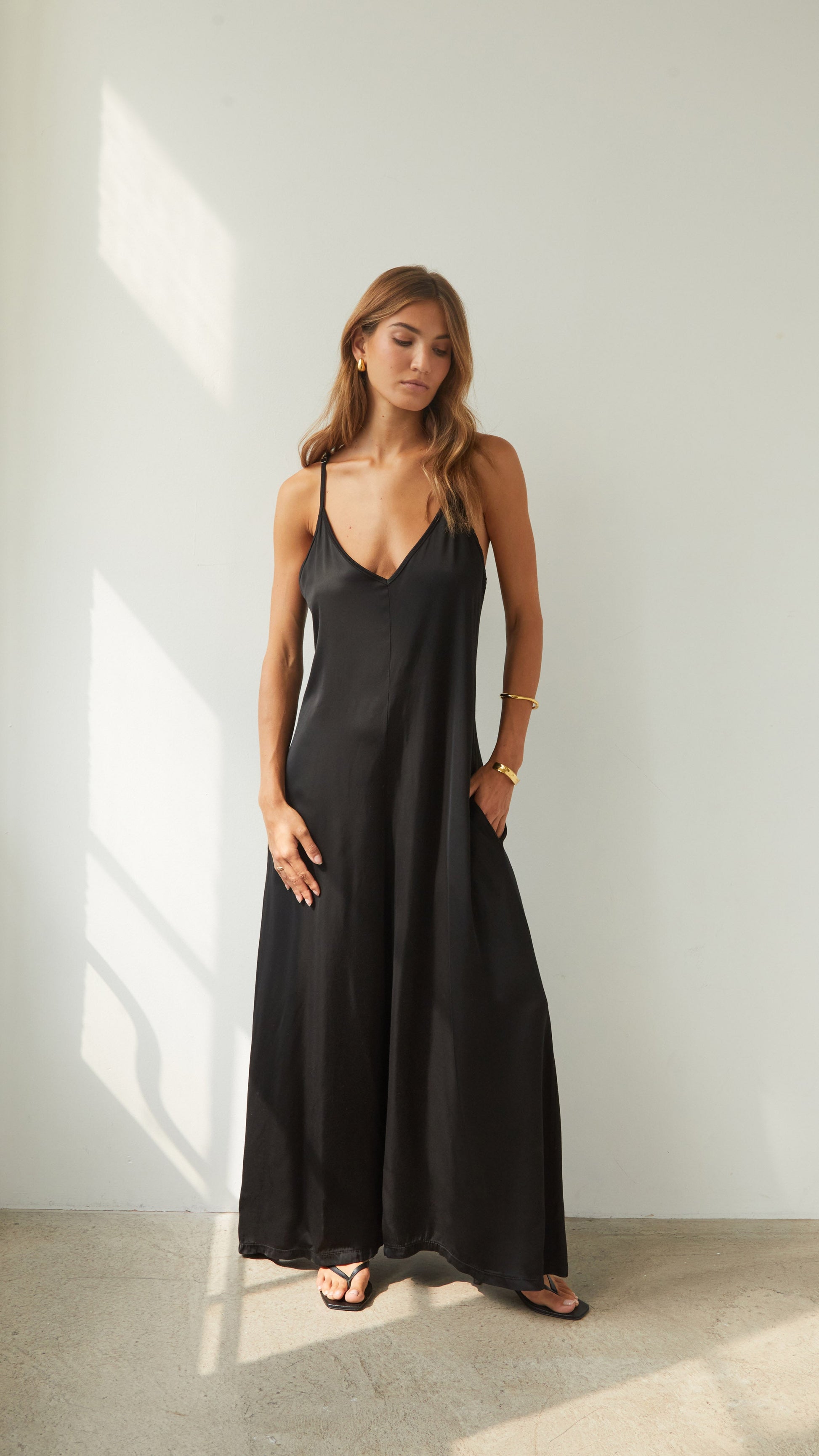 Natalie Satin Jumpsuit - Black