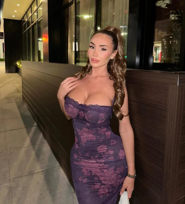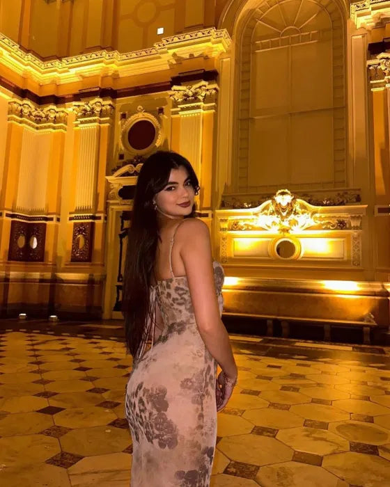 SABELLA Maxi Dress a sensual blend of earth tones and feline elegance. Designed in sheer mesh with a soft abstract animal print, this figure-skimming gown contours your shape while offering a lightweight, second-skin feel. The underwired cups and slim straps elevate its sultry character with refined support.